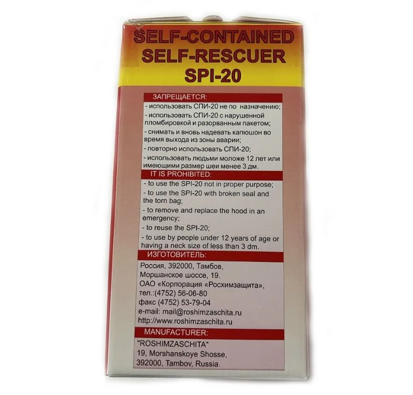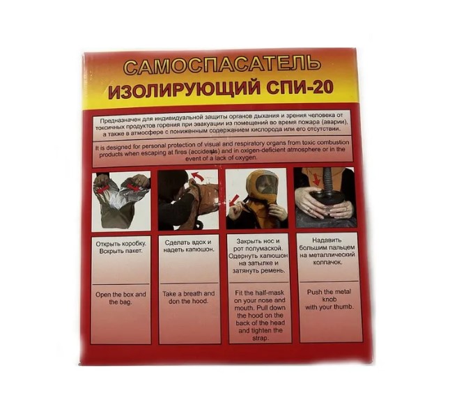 Самоспасатель изолирующий СПИ-20 является средством индивидуальной защиты органов дыхания с химически связанным кислородом, предназначен для индивидуальной защиты органов дыхания и зрения человека от токсичных продуктов горения при эвакуации из помещений во время пожара (аварии), а также в атмосфере с пониженным содержанием кислорода или при его отсутствии.